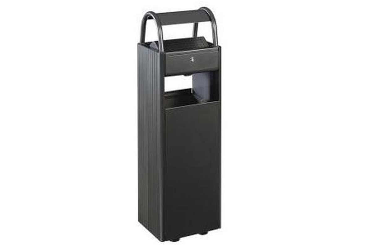 Ce cendrier corbeille sur pied dispose d'une double fonctionnalité cendrier et réceptacle déchets avec deux entrées.