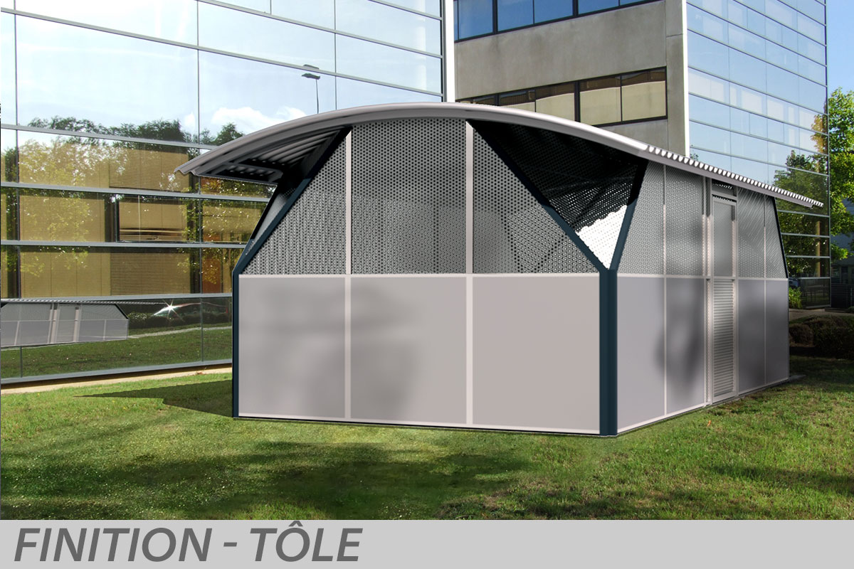 ALOES Urban design a souhaité développer une nouvelle gamme d'abri sécurisés. Nos designers ont souhaité proposer une création originale à travers le modèle Ypsilon®. Son design est ici particulièrement identifiable par la présence de la signature reprise du modèle Ypsilon® des abris containers. Ce "Y" positionné aux angles de l'abri, redéfinit les limites traditionnelles d'un "cube", pour présenter ici une solution originale de la structure d'un parc à vélos motos ou conteneurs poubelles. Cette signature est personnalisable dans ses coloris et vient s'associer harmonieusement au reste de la structure. Les parois peuvent être partiellement équipées de matière à l'aspect bois, tôle perforée, de découpe au laser, de briques, et du thème graphique Tava L'ensemble constitue un mobilier à part entière, propre à répondre aux exigences des architectes, urbanistes en quête d'un produit à la fois valorisant et robuste, s'intégrant parfaitement dans son environnement. Les avantages :